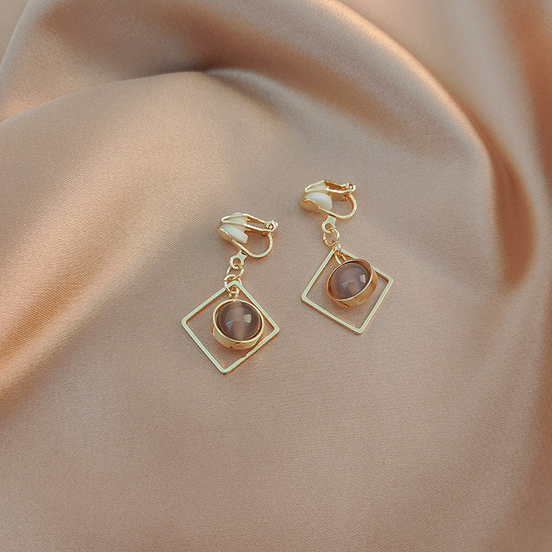 These clip-on earrings feature a dainty, geometric design that makes them perfect for stylish everyday looks. The centerpiece showcases a stunning grey globe pearl for an eye-catching detail.