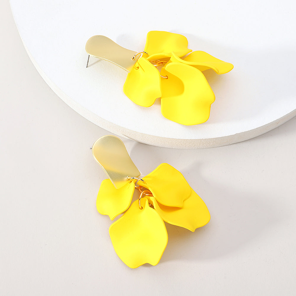 Floral-style dangles with lightweight velvety-matte petals. Gorgeous statement piece at 3 inches in length. A JBKY signature piece.