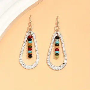 Handcrafted with textured silver charms and tiny multicolored beads, each pair is unique and adds a touch of earthy elegance to any outfit.