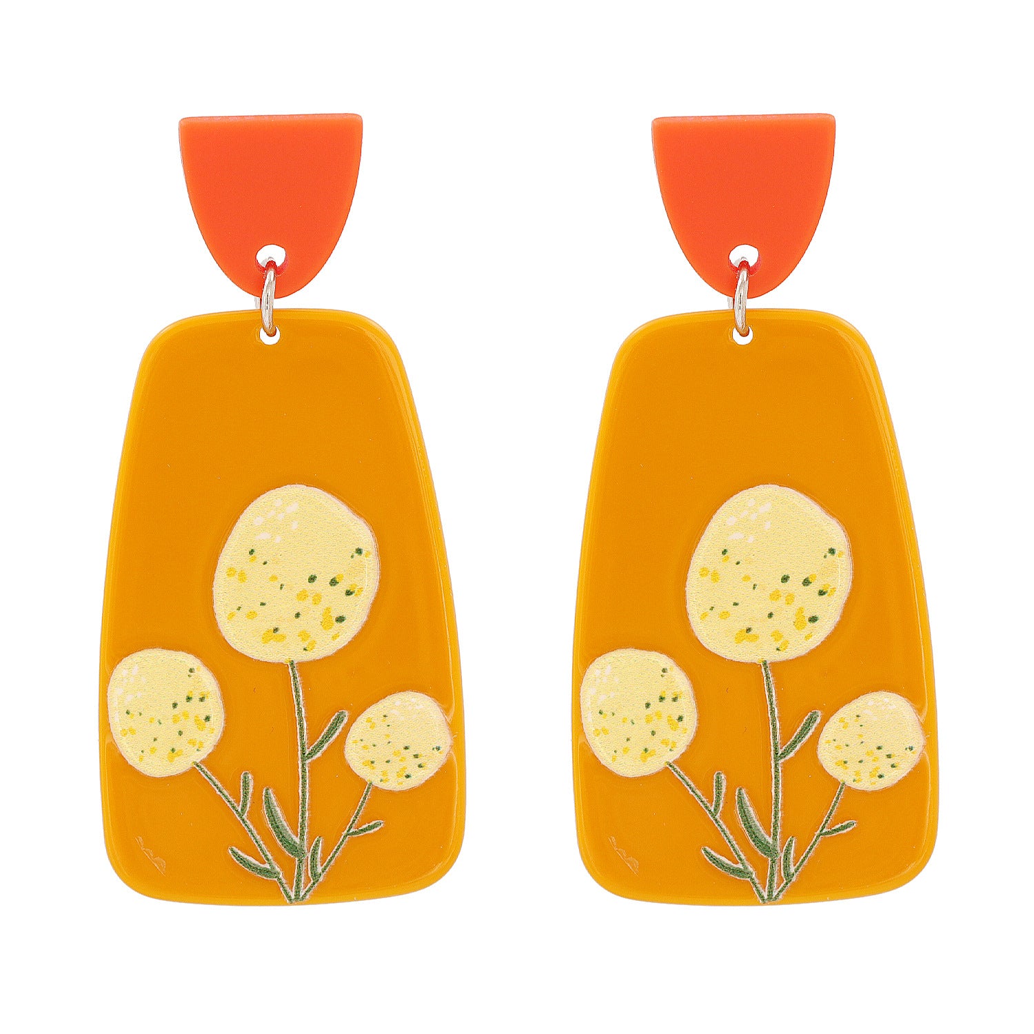 These earrings bring a unique pop of color to any look. Crafted with orange acrylic and a bold floral design, it's a fun and fresh addition to your jewelry collection.
