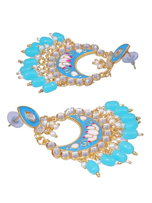Stunning statement earrings in a vibrant Aqua adorned with the resilient lotus