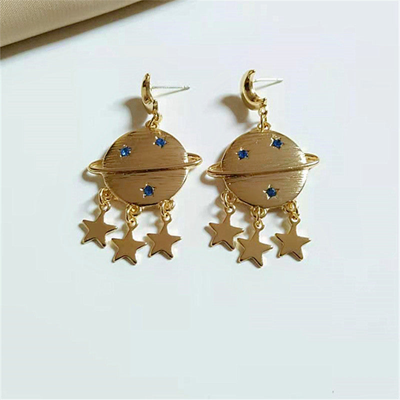 Golden plated planetary beauties imbedded with delicate blue rhinestones