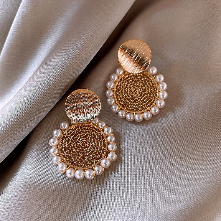 These handmade, wire plaited, dangle earrings feature beautiful pearl beaded edging. Their intricate design will add an elegant and classic touch to any outfit.