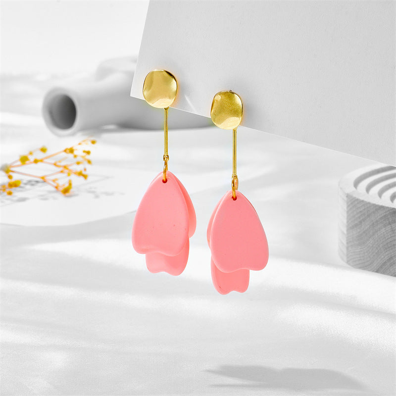 Soft matte drop petals, with gold posts. Ideal for those who admire our "Floating Flowers" or "Vibe Check" designs but you crave a more subtle statement.