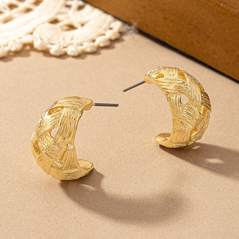 Dainty, classic, chic and small. Simple hoops with a woven basket inspired design.