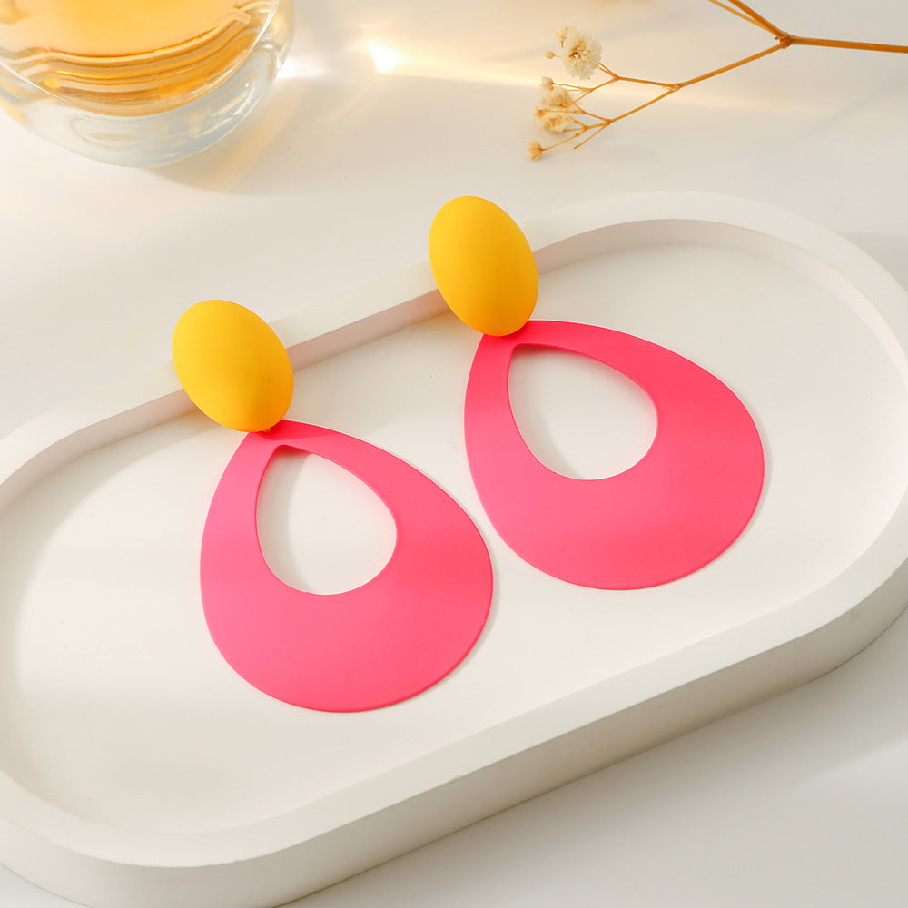 The Groovy earrings will add a bold statement to your style. Featuring a bright yellow and pink matte finish, these earrings will make sure you stand out. Make a retro statement with Groovy.