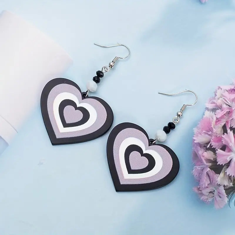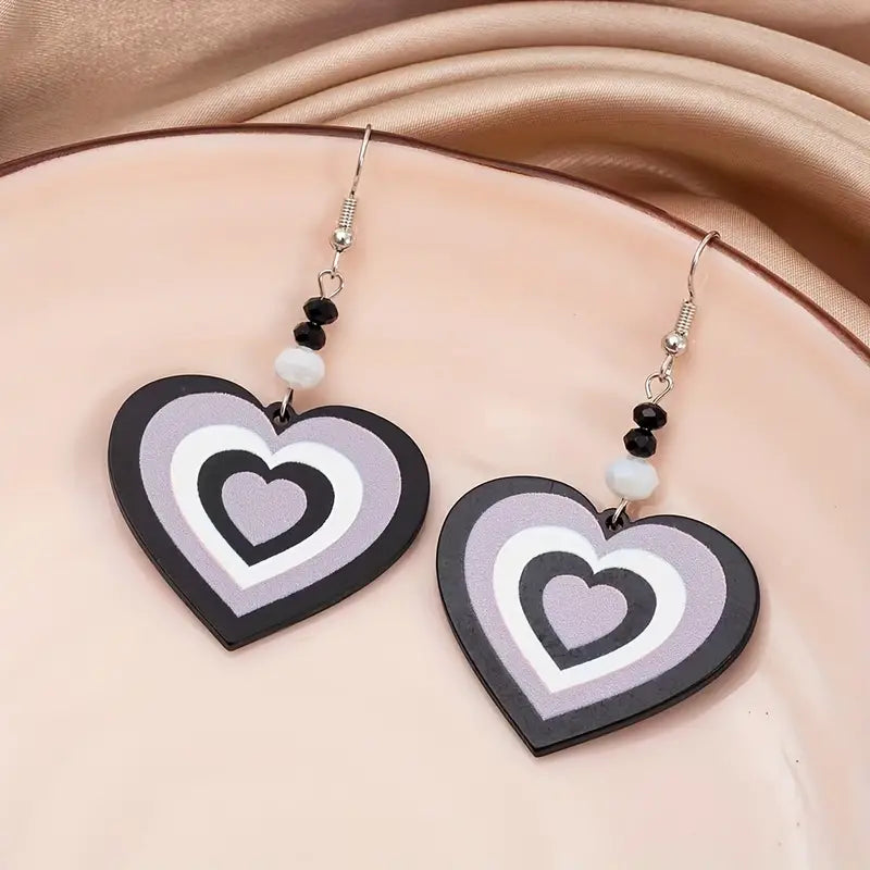 Cute Black, Lilac & White Heart Earring will have hearts fluttering..
